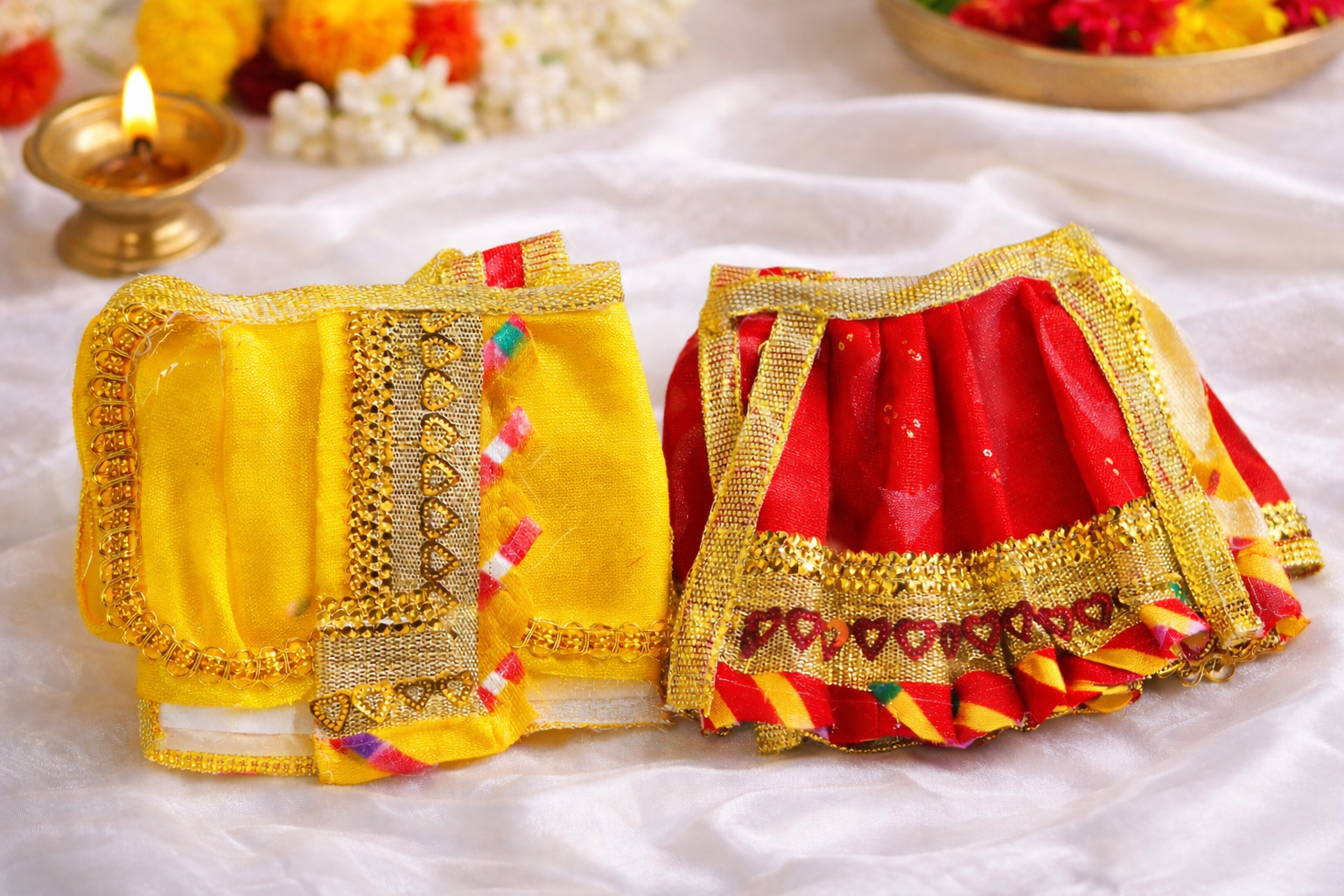 2 Laddu Gopal Dress Sets (Yellow & Red)